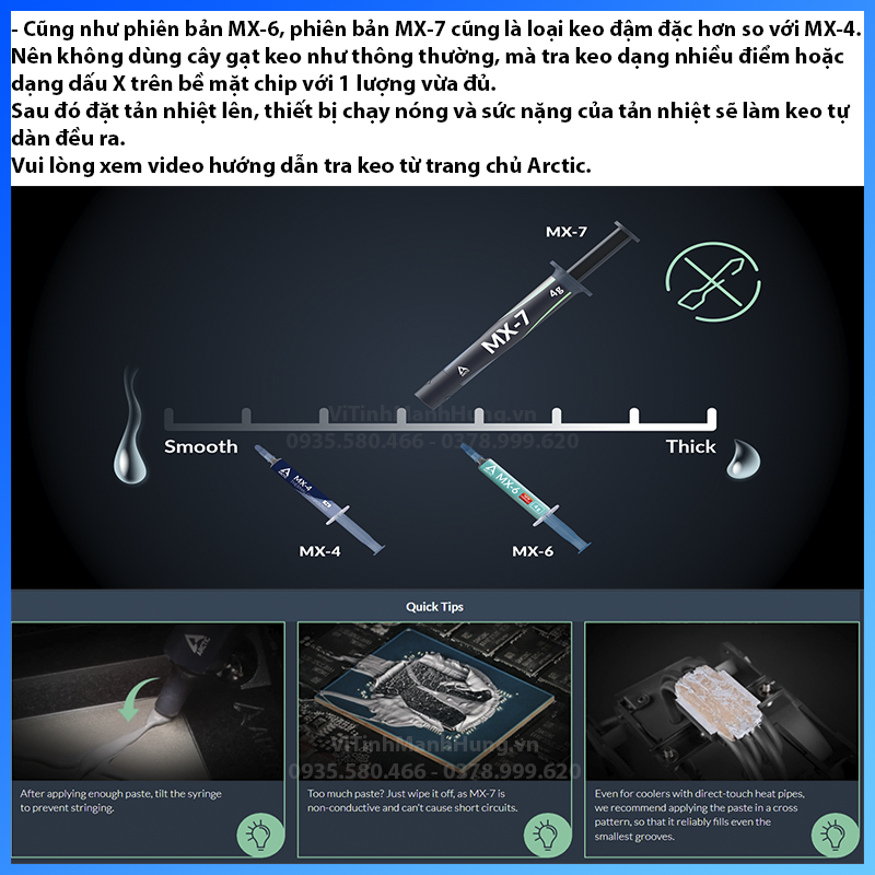 - Cũng như phiên bản MX-6, phiên bản MX-7 cũng là loại keo đậm đặc hơn so với MX-4.