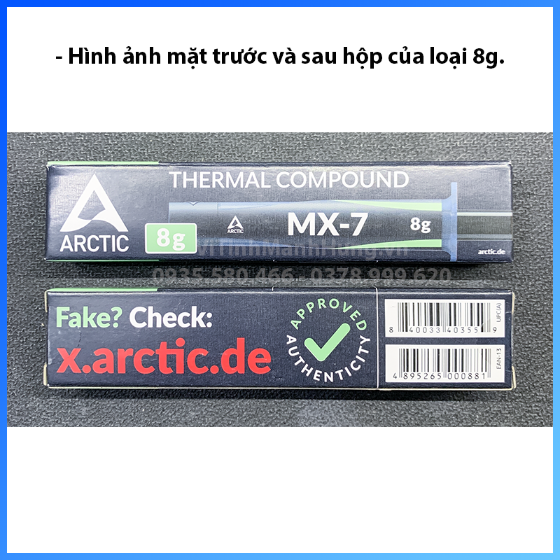 - Hàng chính hãng, có thể kiểm tra bằng mã code dán trên ống keo trên trang kiểm tra của Arctic.