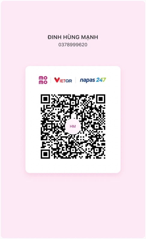 - Số thẻ MOMO / ZaloPay / ViettelPay / AirPay : 0378 999 620.